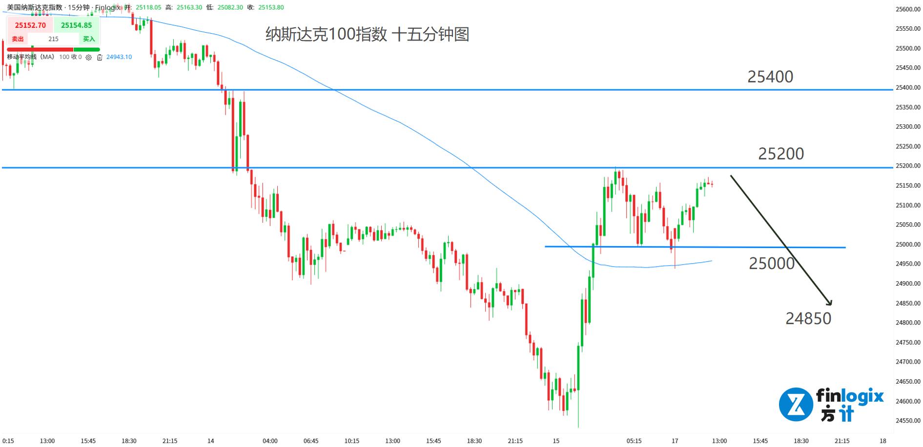 技术面: 100均线水平,价格方向未定,现价在25000上方形成价格静区。高位空单布局可以放在美市盘前或盘初进行布局。尽量设好小止损,规避意外消息面的利好。25400作为关键头部颈线关口,有更强的阻力效果。