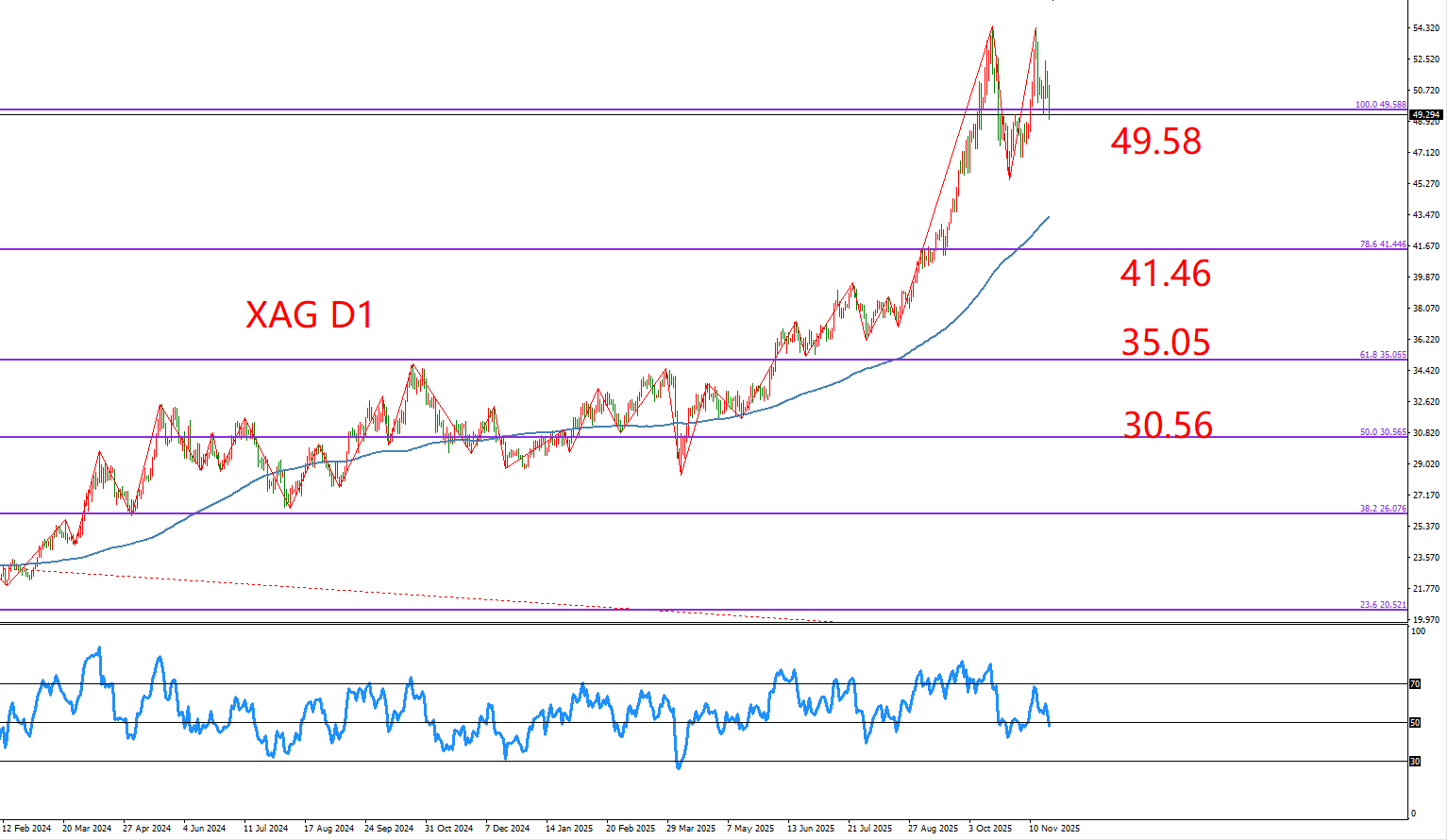 下方支撑:41.46 / 35.05 美元/盎司