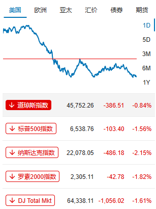 美股三大指数齐跌,道指收跌0.84%,标普500指数跌1.55%,纳斯达克综合指数跌2.15%。尽管该财报强劲,但许多投资者仍担心AI公司虚高的估值及其激进的支出计划可能预示着泡沫迹象。投资者已对大型科技公司在AI方面的大规模支出承诺感到不安,这类公司的股价在最近几个交易日遭到抛售。