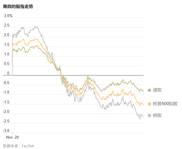 美国银行本周的调查显示,45%的全球基金经理认为AI股市泡沫是市场面临的重大风险之一。但随着市场受到英伟达财报影响短暂迎来反弹,不过随后迎来强劲市场卖压,美股周四大幅下挫,早盘涨幅尽数回吐,标普500指数收跌1.6%,逾2.7万亿美元市值随之蒸发,基于期权衡量的股票预期波动率指标VIX指数收于26上方,为4月以来首次。尽管英伟达周三盘后发布的业绩曾短暂缓解市场对AI股泡沫的忧虑,推动该指数早盘一度飙涨1.9%,但最终仍难挽颓势。特斯拉、Alphabet、苹果、微软、博通和亚马逊单日市值波动均超千亿美元。