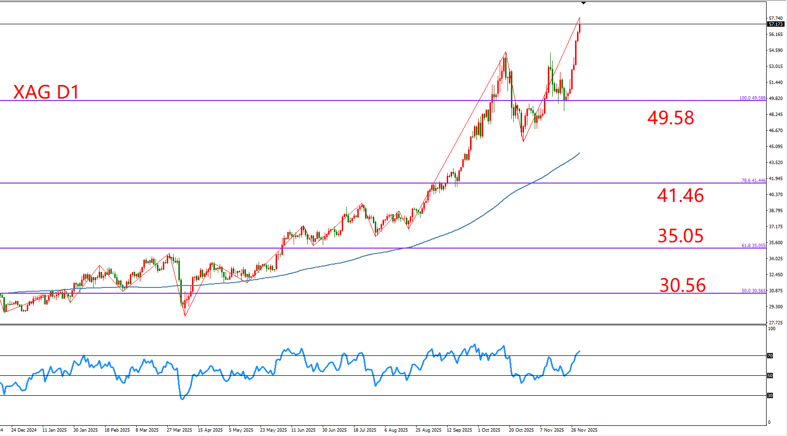 下方支撑:54.4 / 49.58 / 41.46 美元/盎司