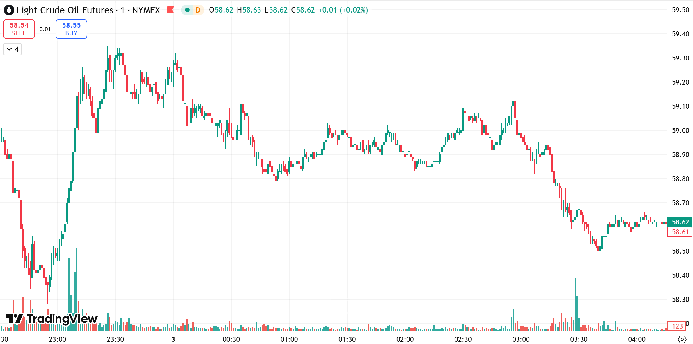 周三,周二现货黄金交投于 4209 美元/盎司附近,金价周二自六周高位回落,因投资者在近期强劲上涨后进行了获利了结操作;美原油交投于 58.67 美元/桶附近,油价周二下跌超 1%,市场在摇摆不定的俄乌和平希望与持续存在的供应过剩担忧之间进行权衡。