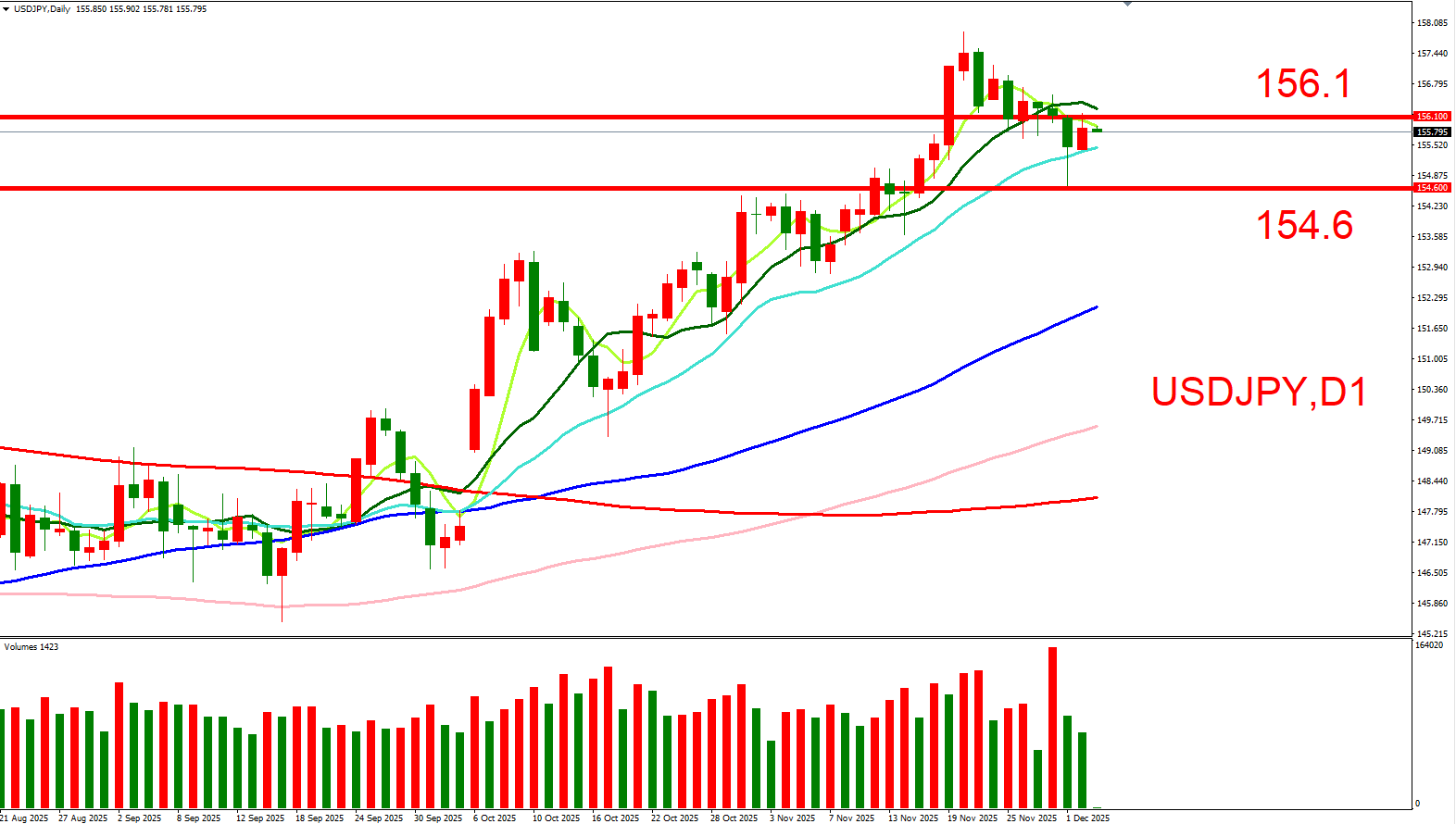 美联储12月降息在即,同时日本央行对于再次加息的鹰派言论再起,因此短线上美日兑将偏向空头看待。短线上可以(156.1,12/01大量高位)与(154.6,12/01大量低位)作为压力与支撑位来做参考。