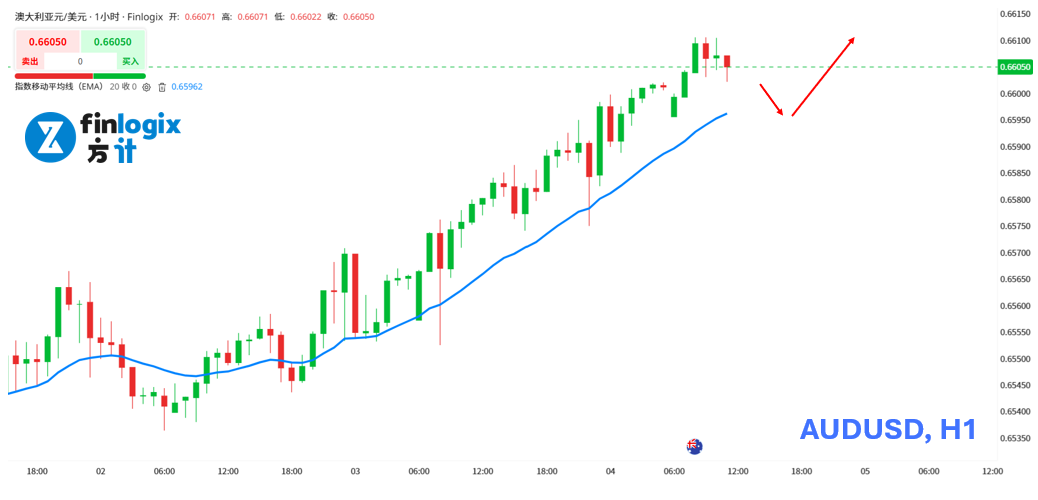 技术面:弱于预期的澳大利亚GDP也未能阻止澳元的强势,因此在货币对选择上仍优先考虑澳元。目前小时线沿着20均线一路向上,日内留意回踩该均线 (约0.6595) 止跌的偏多机会。