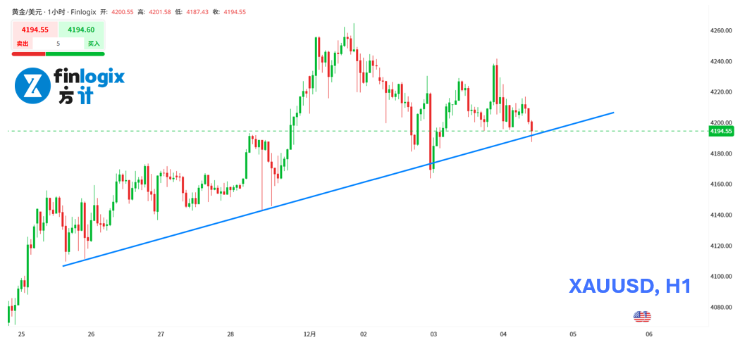 黄金本周转为盘整,但技术面仍稳站在 10 月以来的趋势线上方,整体结构保持偏多。