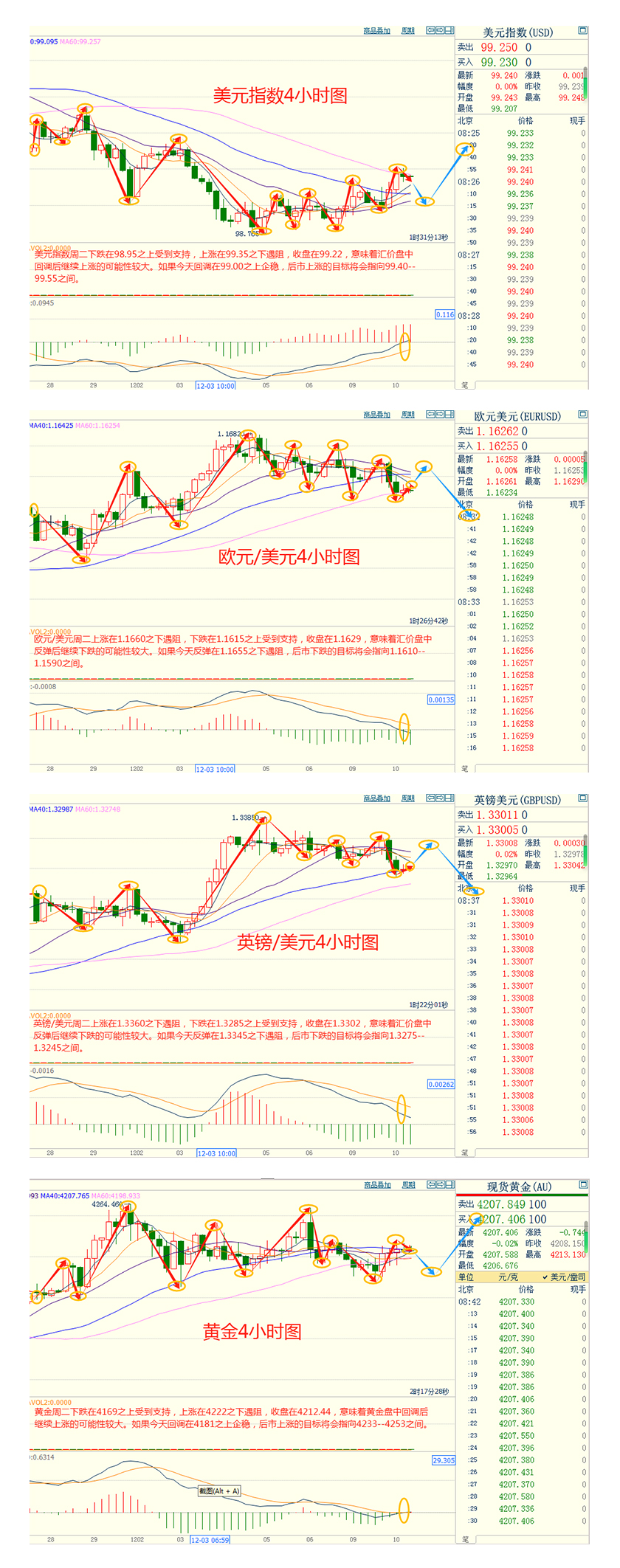 美元指数:可以在99.50---99.00的区间下限买入,有效破位25个点止损,目标在区间的上限。