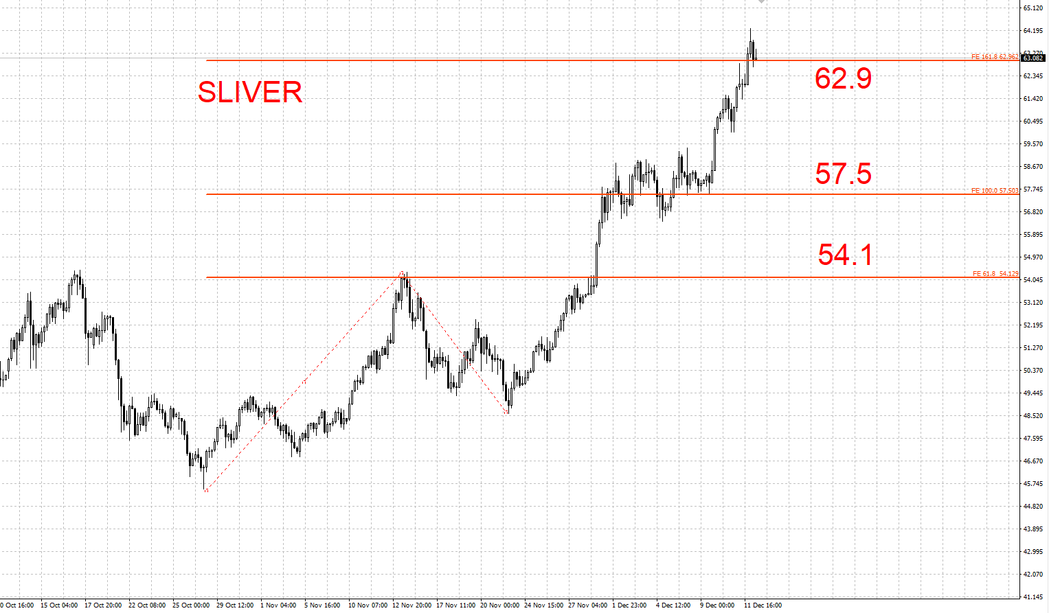 下方支撑:62.9 / 57.5 / 54.1美元/盎司