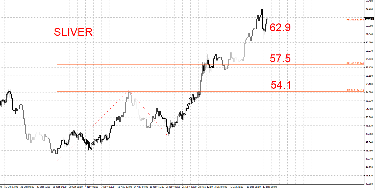 下方支撑:62.9 / 57.5 / 54.1美元/盎司