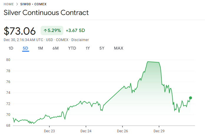 今年表现最抢眼的投资标的之一——白银期货,周一(29 日)走出惊人反转行情。在盘中首次突破每盎司 80 美元历史新高后,银价急转直下,终场暴跌 8.7%,创下自 2021 年 2 月以来最大单日跌幅。