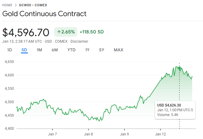 金价冲破 4600 美元银价飙涨 6% 再创历史新高,油价升至七周高位