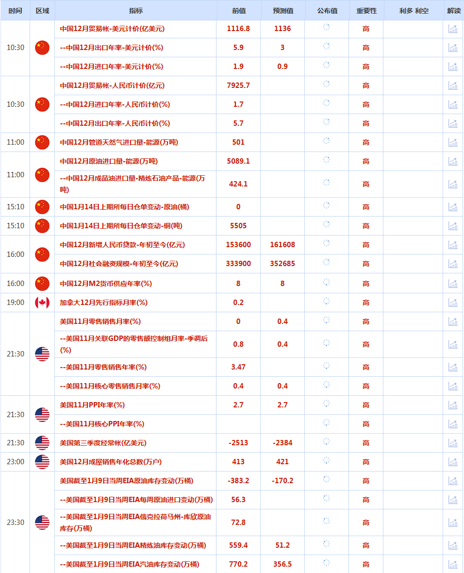 美元指数当日上涨0.28%,报99.15。美国12月消费者物价指数符合预期,环比上涨0.3%,同比上涨2.7%;核心CPI环比上涨0.2%,同比上涨2.6%。数据进一步强化了通胀呈下降趋势的观点,被视为可能为美联储提供更多降息空间,但交易员对通胀可能已触及阶段性低点仍存忧虑。