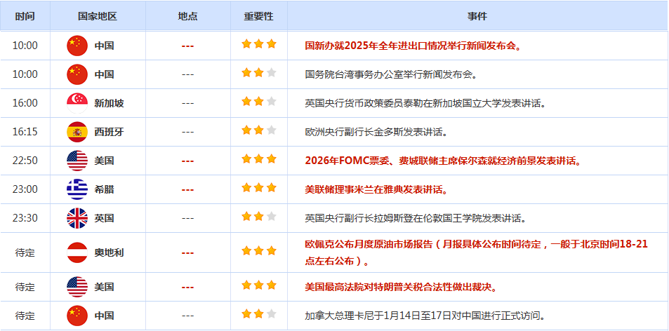 欧元、英镑和澳元均对美元走弱。市场普遍预期美联储将在1月底的政策会议上维持利率不变,联邦基金利率期货显示首次降息可能推迟至6月。此外,交易员仍在关注围绕美联储主席鲍威尔遭司法调查所引发的央行独立性担忧,全球央行官员周二已发表联合声明对其表示支持。