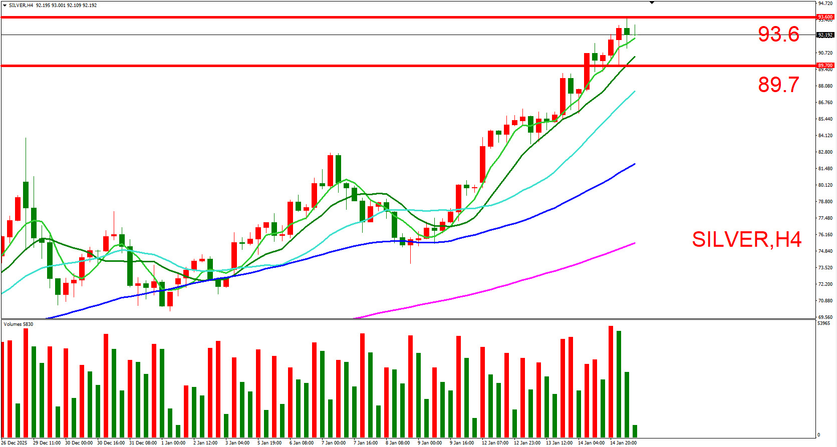 白银跟随黄金同步,短线偏多看待。可参考(93.6,历史最高位)与(89.7,昨晚大量低位支撑),来作为压力与支撑位参考,用以判断低接或突破进场机会。