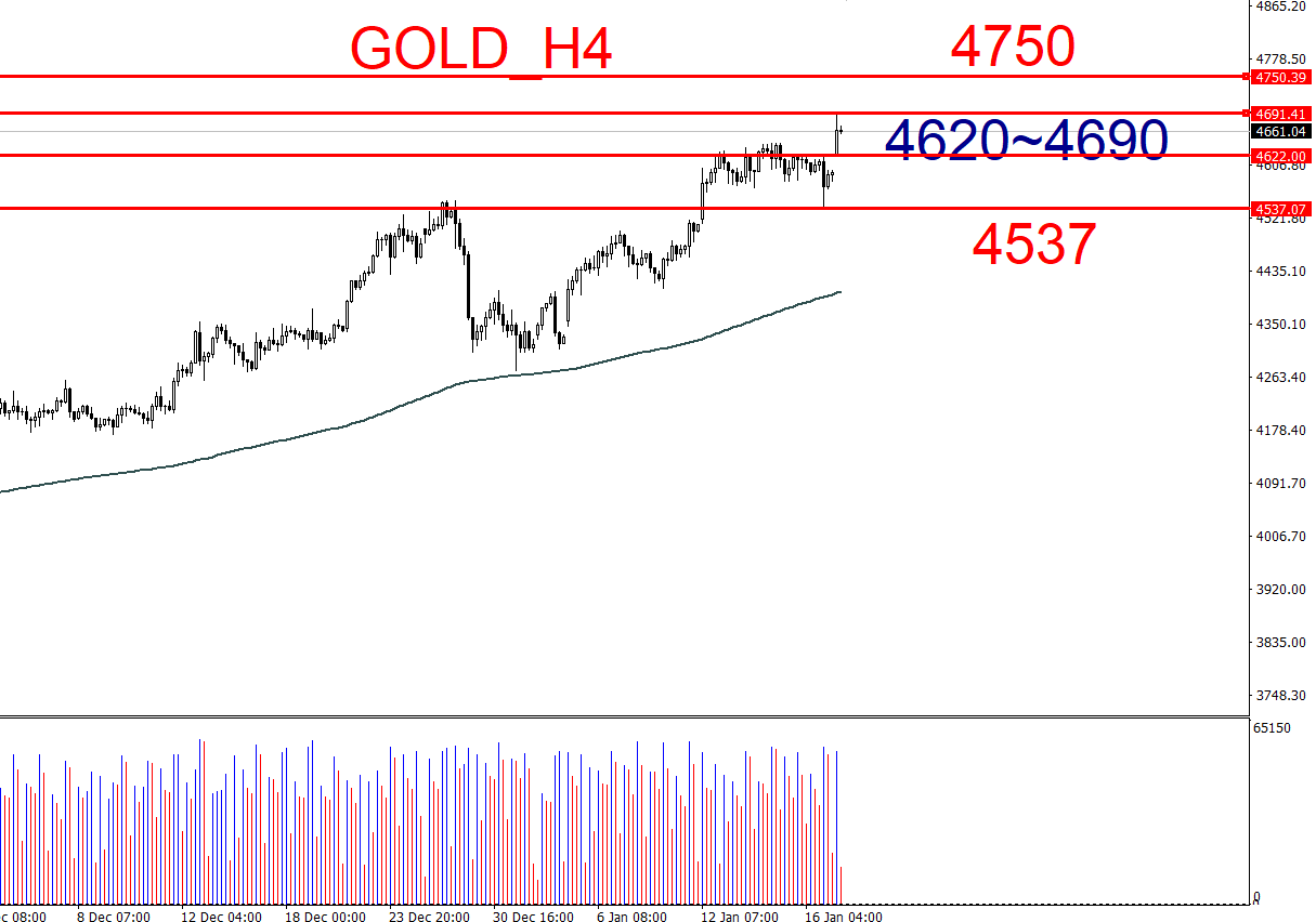 突破4690:可尝试多单,目标看向更高点位(如4750或更高)。