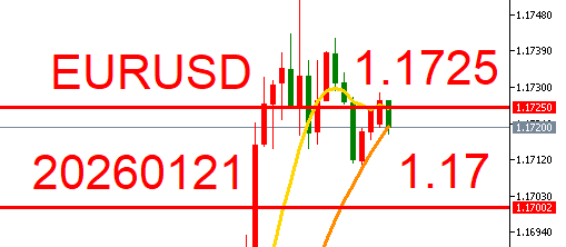 欧元持续在1.17大关震荡保持观望。