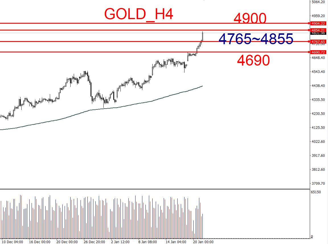 突破4855:可尝试多单,目标看向更高点位(如4900或更高)。