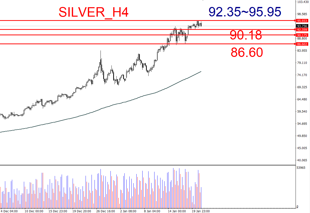 当前价格位于92.35~95.95区间,建议采取区间突破操作方式:
