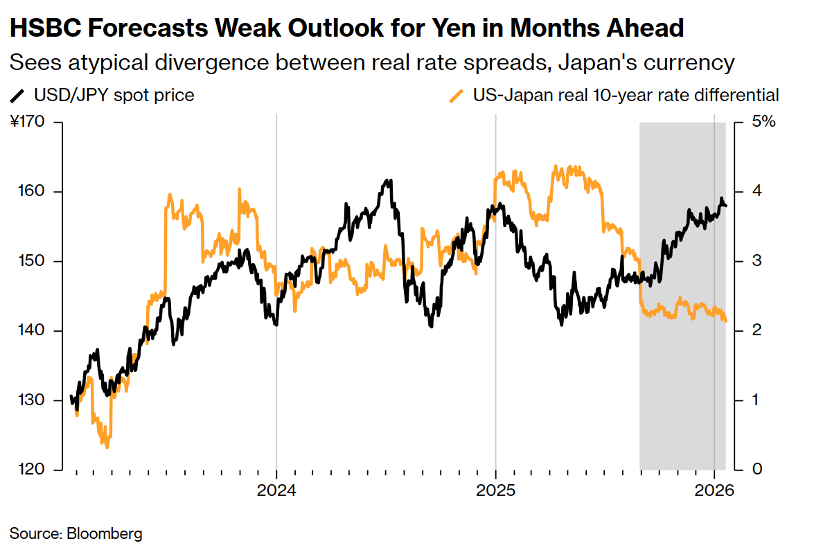 对日本****大规模财政支出及通胀卷土重来的恐惧,正在切断日元与美元及国债收益率之间的传统联系。面对这一市场变局,汇丰控股(HSBC)策略师团队决定彻底逆转其对日元未来数月的走势预测。分析师指出,对日元“结构性疲软”的核心担忧源于去年高市早苗当选日本首相后的政策走向。市场普遍担心其政策将导致债务货币化、货币购买力下降,以及持续的通胀和负实际利率。汇丰现已修正预测,预计年中日元兑美元将跌至160大关,而非此前预测的升值至150水平。策略师同时警告,若日元跌破160,日本当局干预汇市的可能性将成为令局势更加复杂的变量。