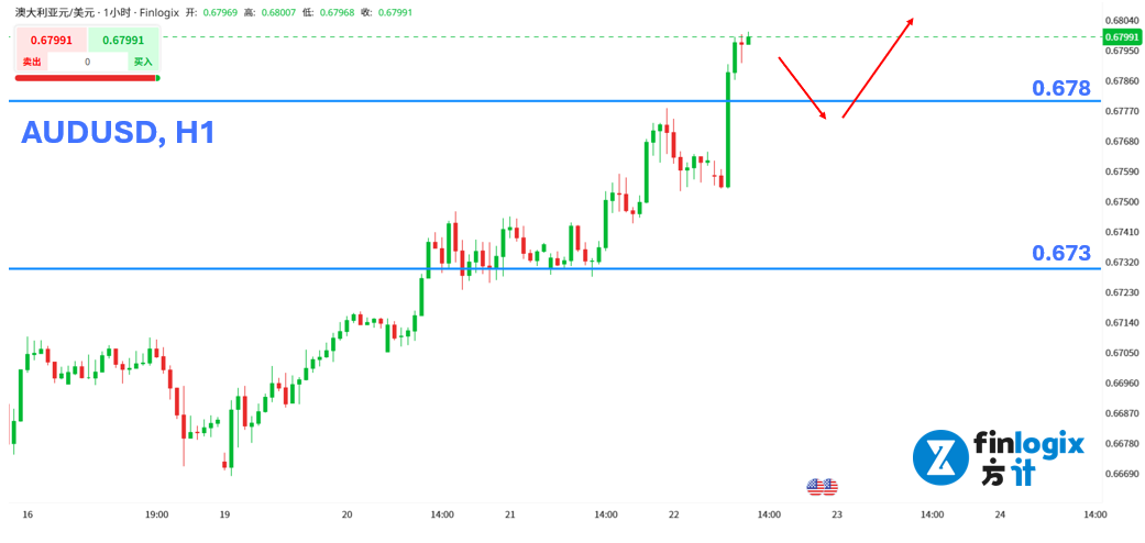 技术面:今早澳大利亚公布的就业报告表现强劲,失业率不仅低于市场预期,也低于前值,强化市场对澳洲央行今年进一步收紧政策、甚至加息的预期。日内随美元反弹与黄金回落,澳元也可能跟随回调,但在货币政策相对鹰派的基本面支持下,更应把握回调寻求逢低入场机会。若回调至0.678支撑一带止跌,考虑做多。