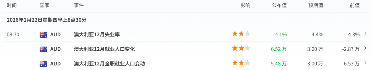 外汇市场方面,短线优先回避日元。一方面周五将迎来日本央行利率决议,另一方面高市可能解散众议院,政策与政治变量叠加,使日元波动风险明显升高。相对之下,今早澳大利亚公布的就业报告表现强劲,失业率不仅低于市场预期,也低于前值,强化市场对澳洲央行今年进一步收紧政策、甚至加息的预期,日内维持偏多看待澳元。