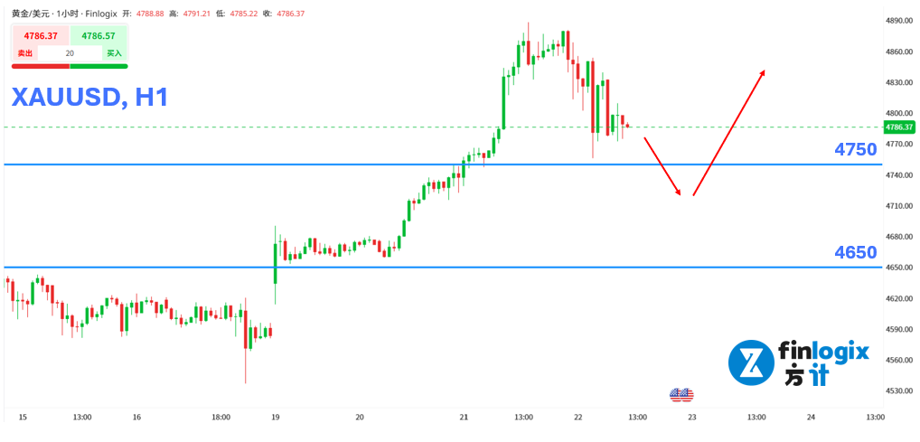 技术面:在格陵兰和关税问题缓解后,黄金开始回吐自周一以来在风险情绪推动下的快速涨幅,短线进入整理与消化阶段。操作上可留意回测4750支撑一带止跌确认后,再度分批布局多单的机会。