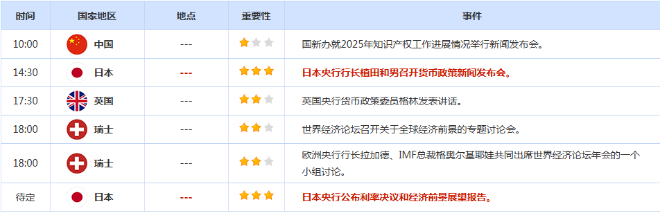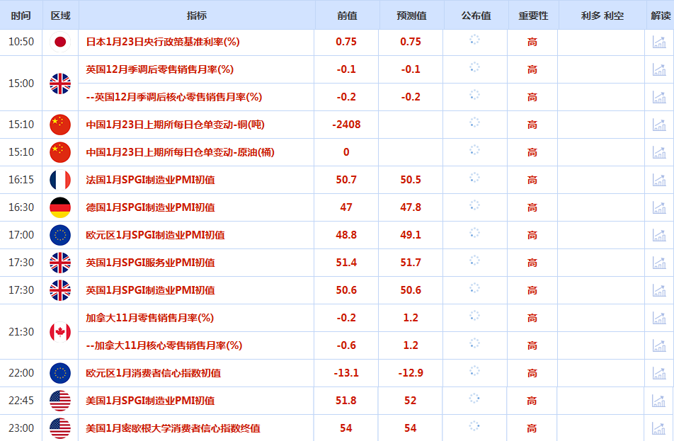 前日公布数据与消息: