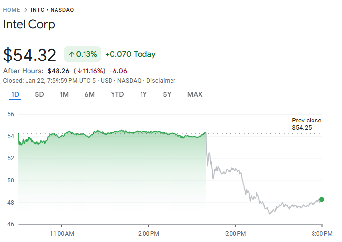 英特尔发布疲软一季度指引,股价盘后暴跌逾 10%