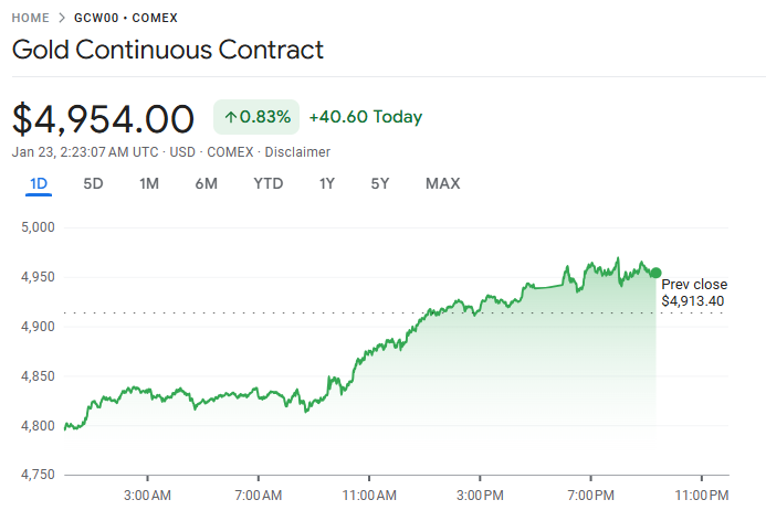 金价突破 4900 美元再创新高, 白银同步大涨!