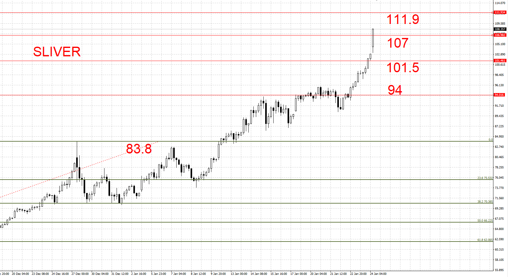近期白银再创历史新高,就日内操作方面,短线避免追高,若想尝试多单仍建议等待回落布局机会为主,短线支撑关注107。