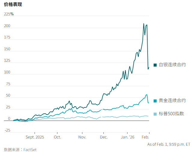 周五的猛烈抛售导致银价暴跌,黄金期货创下有记录以来最大单日美元跌幅,这是贵金属疯狂交易的最新波折,其价格波动已像模因股一样剧烈。几个月来,一波势不可挡的涨势将金价和银价推至历史新高,吸引了投机者,并引发了人们对全球投资者正对美元等传统货币失去信心的担忧。从周四晚间开始,这股涨势终于泄气。银价暴跌31%,创下1980年3月以来最大跌幅,二月期货周四收于每盎司114美元以上,周五结算价为78.29美元。35.747美元的跌幅约相当于就在6月份时的盎司价格。