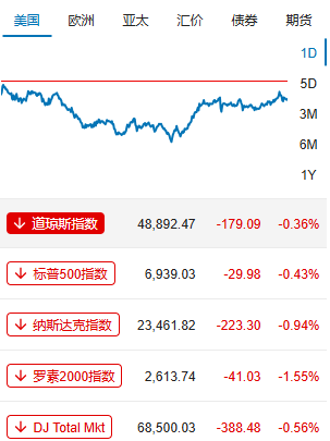 美国股指期货和****周日双双下跌,此前贵金属市场上周五遭遇大规模抛售,为动荡的2026年第一个月画上句号。道琼斯指数期货周日晚间下跌75点,跌幅0.2%。标普500指数期货下跌约0.3%,纳斯达克100指数期货下滑0.6%。****在周末期间继续下滑,自去年4月以来首次跌破80,000美元,最新成交价低于77,000美元。该****上周六暴跌约10%,过去三个月累计下跌近30%。追踪美元兑一篮子竞争对手货币的洲际交易所(ICE)美元指数周日小幅走高。此前,美元在1月份下跌2.1%,并在上周二触及2022年2月以来的最低水平。过去一年,美元累计下跌超过10%。投资者还将消化特朗普上周五宣布的消息,即他将提名凯文·沃什(Kevin Warsh)接替杰罗姆·鲍威尔(Jerome Powell)担任美联储主席。