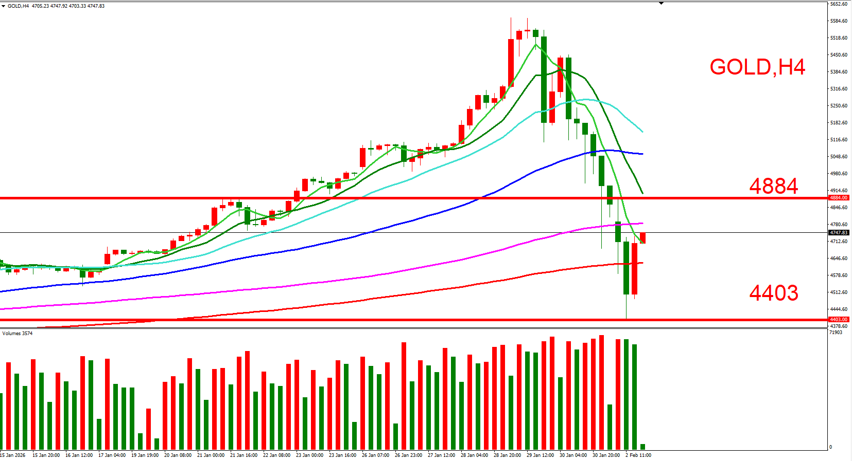 短线可以(4884,今日反弹高位)与(4403,今日为止长下影线低位) 来作为压力与支撑位参考,用以判断低接或突破进场机会。