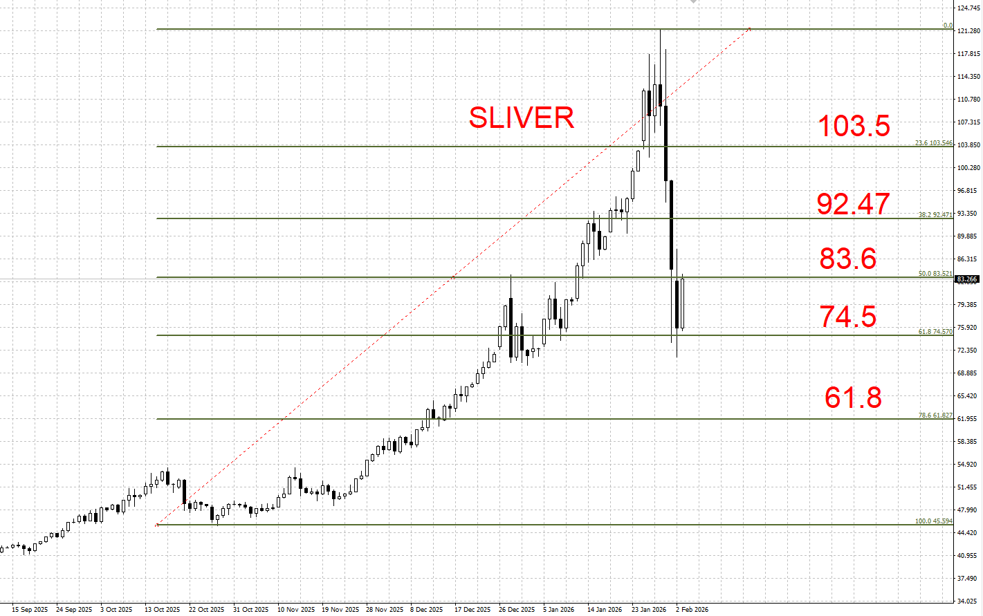 下方支撑:74.5 / 61.8 美元/盎司