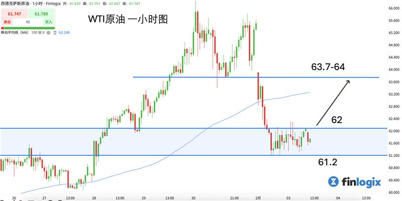 技术面:100均线向上,油价在61.2关键支阻互转水平线获得支撑,并形成价格静区。多单入场应该耐心等待静区突破。以跟随看涨为主。