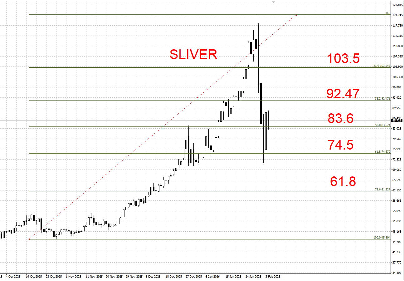 下方支撑:83.6 / 74.5 / 61.8 美元/盎司