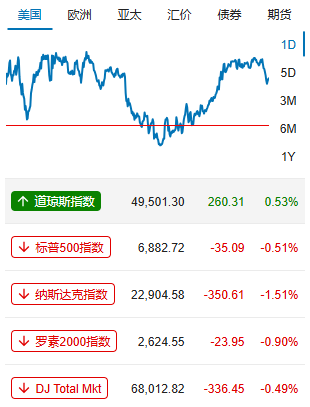 昨日美国三大股指涨跌互现,道指收涨0.53%,纳指跌1.5%,标普500指数跌0.51%。