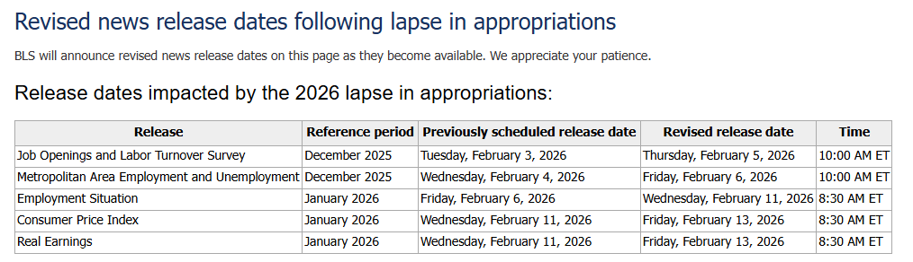 本周五原定将是美国一月非农数据发布,不过受到美国****部份停摆影响,本次非农数据将延后发布,除此之外昨日美国职位空缺报告也因****停摆而暂停发布。随着稍早拨款法案通过后,美国劳工统计局释出最新数据发布时间点。消费者物价指数CPI发布时间为2月13日,非农数据为2月11日。