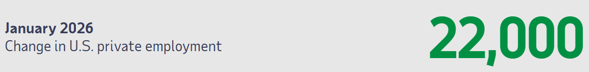宏观数据方面,根据美国自动资料处理公司ADP发布最新数据,美国一月ADP就业人数增加2.2万人,不及市场预期中值的4.8万人,也低于彭博调查的所有经济学家预估值,前值从4.1万人下修至3.7万人。2025年新增就业岗位数量有所减少,私营企业新增就业岗位39.8万个,而2024年这一数字为77.1万个。过去三年里就业岗位新增数量持续大幅下降,但工资增长却保持稳定。
