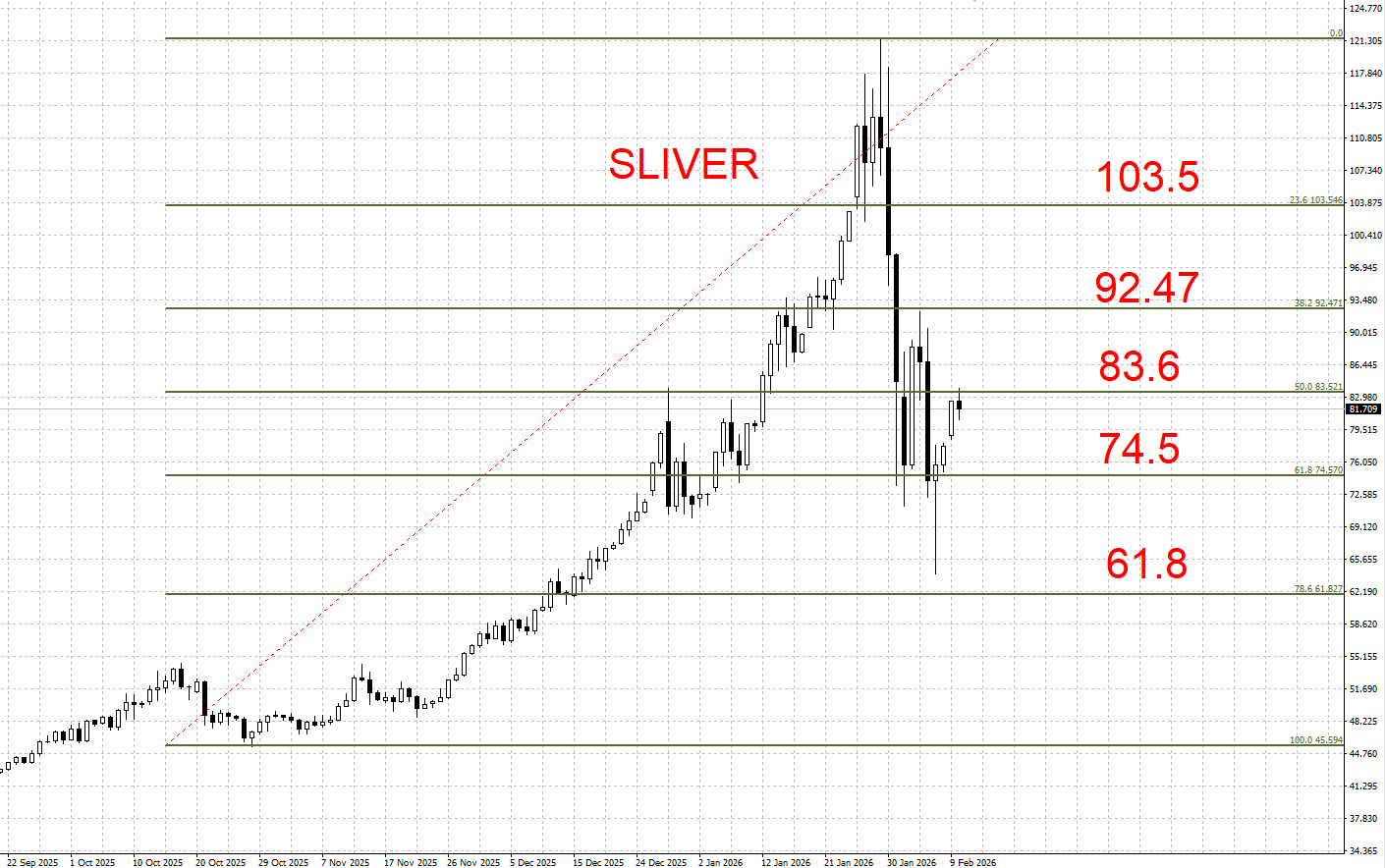 银价继上周破底后整体行情延续反弹,不过可以留意到近期行情受制于83.6阻力,若近期未能突破该阻力位置留意行情修正风险。