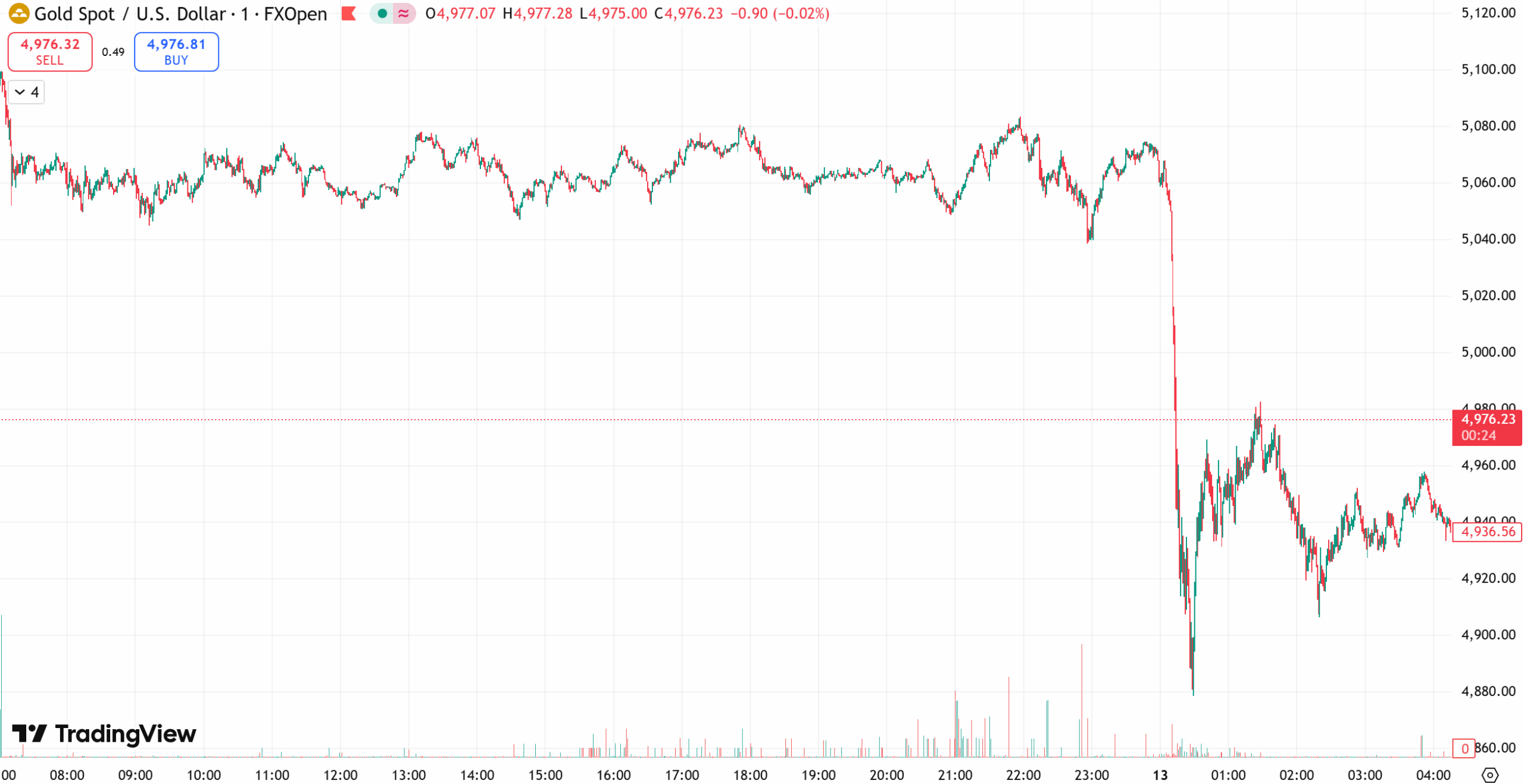 金价周四跌至近一周低点,因强劲的美国就业数据削弱了市场对美联储近期降息的预期。金价跌破每盎司 5000 美元关口后,抛售压力加剧导致跌幅扩大。