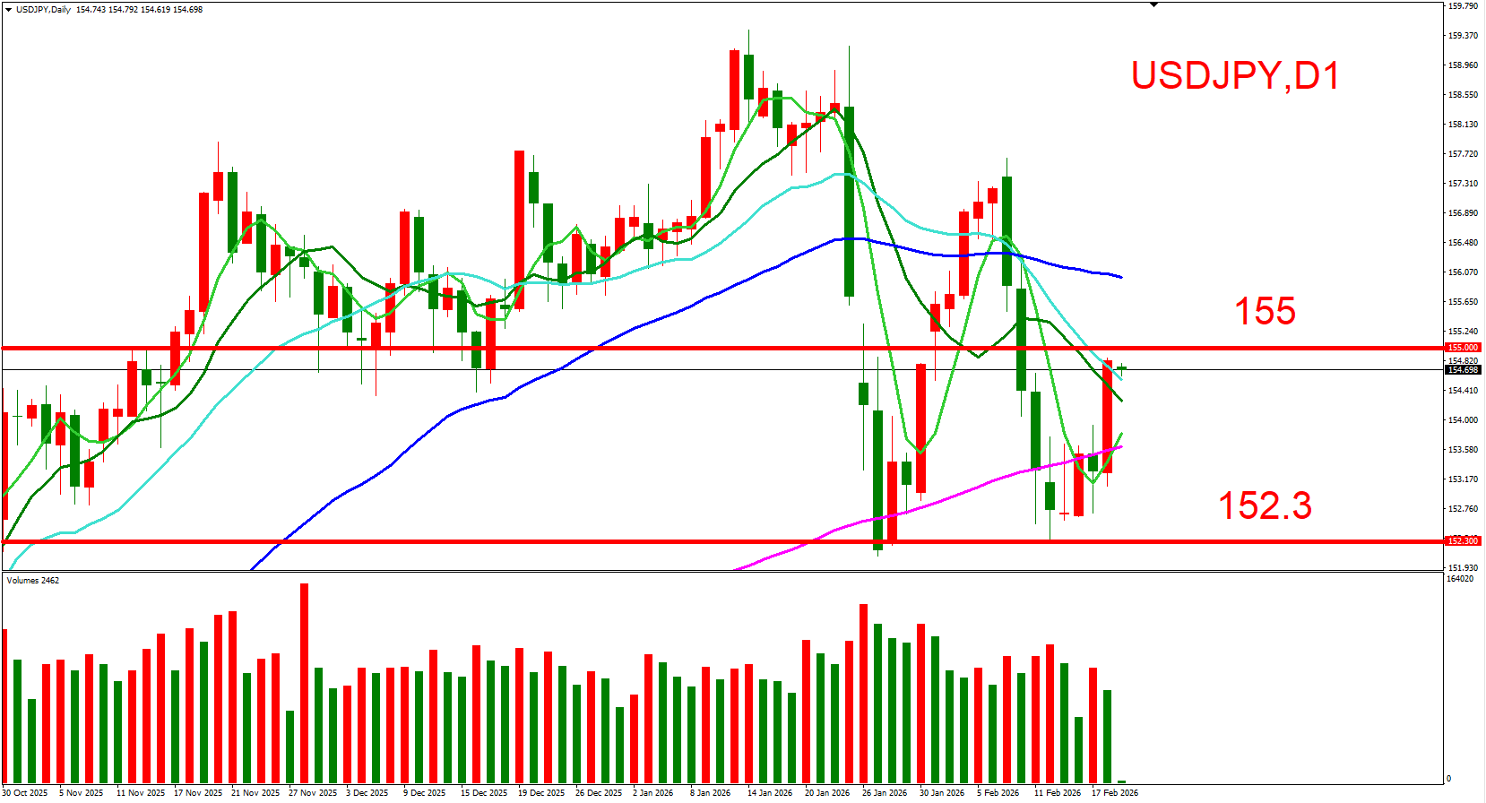 短线上可以(155,整数大关)与(152.3,2/12下影线大量低位)作为压力与支撑位来做参考。
