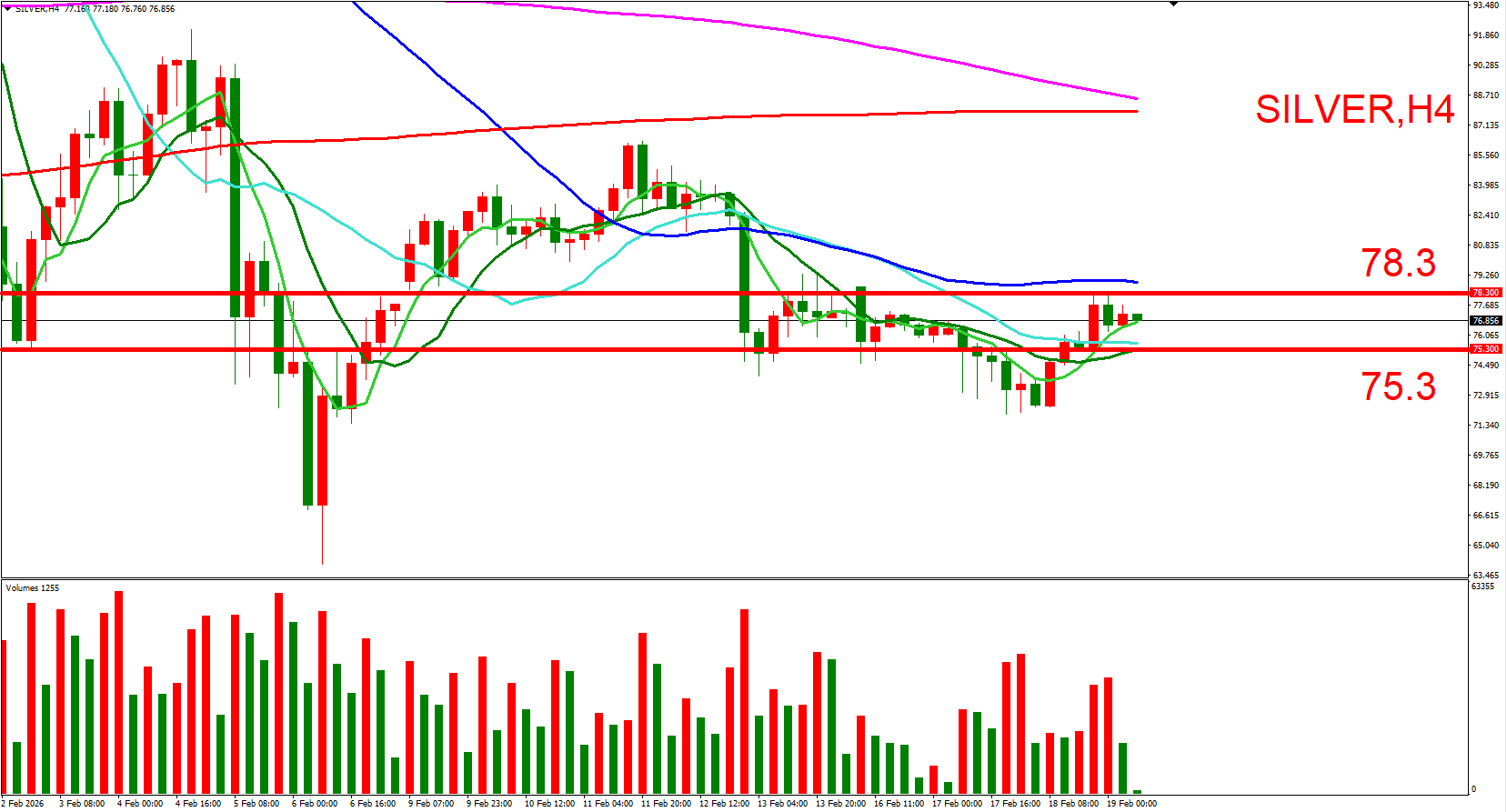 白银跟随黄金同步,短线偏多看待。可参考(78.3,昨日大量高位)与(75.3,昨日大量低位),来作为压力与支撑位参考,用以判断低接或突破进场机会。