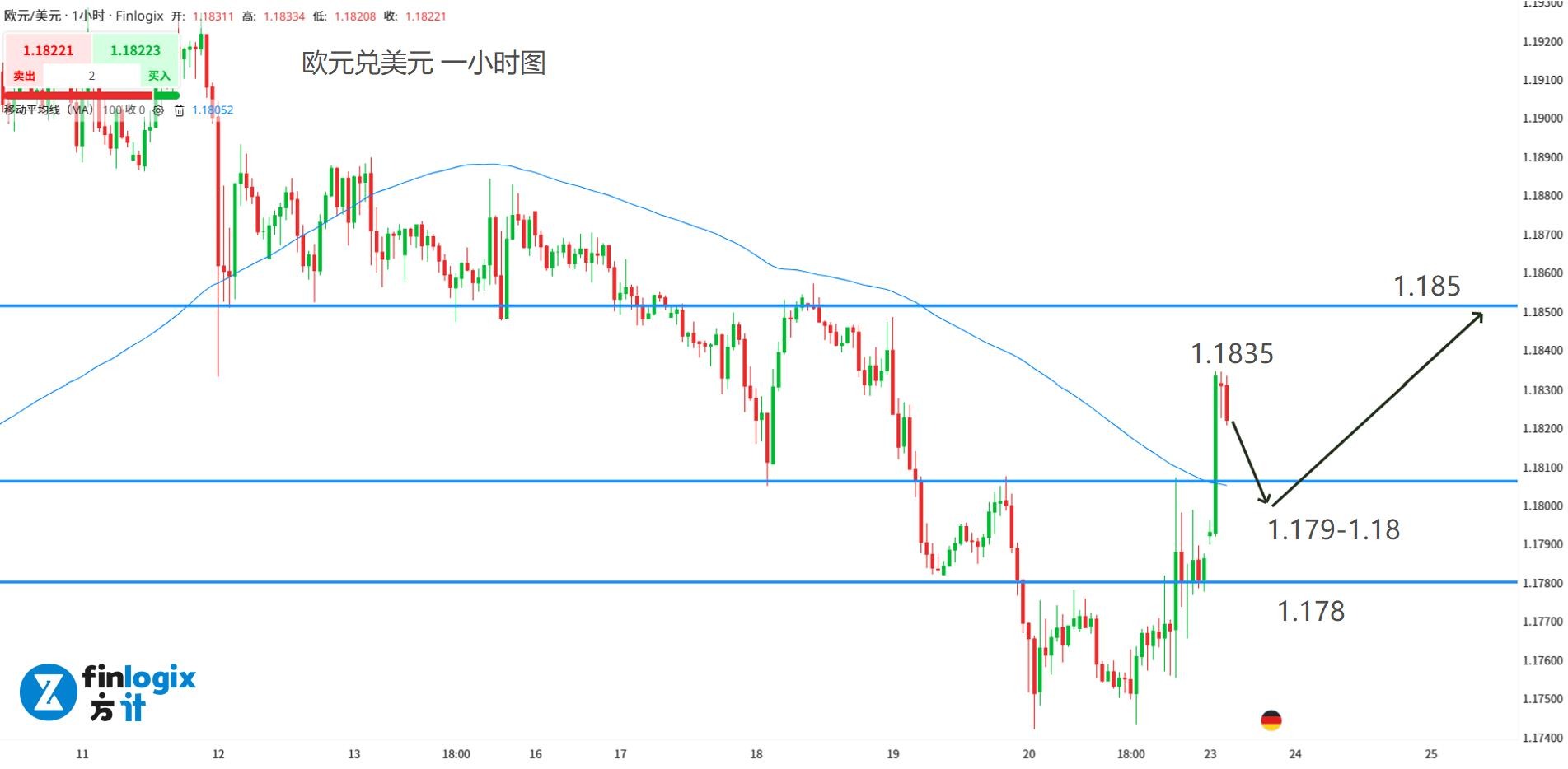 短线交易策略:(趋势跟随)1.179-1.18回踩偏多