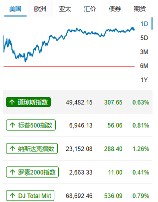 美国贸易政策缺乏明确性,以及本周与伊朗下一轮核谈判之前美国军事集结的紧张局势,支撑了金银价格。同时,美国短期维持利率不变的前景可能会给黄金带来阻力。周三国际现货黄金一度夺回5200美元关键关口但没能守住,最终收涨0.41%,报5164.96美元/盎司;现货白银一度站上90美元关口,最终收涨2.32%,报89.2美元/盎司。美股三大股指收涨,道指收涨0.63%,标普500指数收涨0.81%、纳指收涨1.26%。