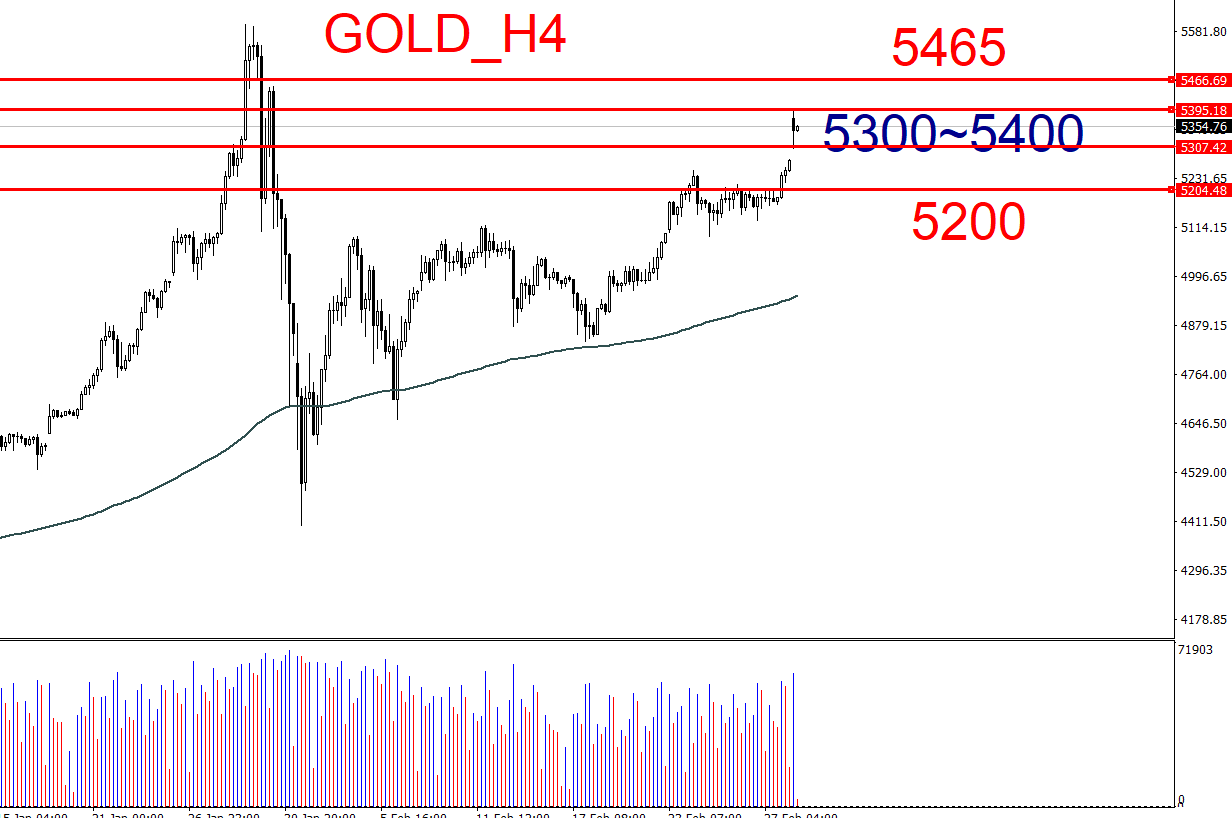 突破5400:可尝试多单,目标看向更高点位(如5465或更高)。