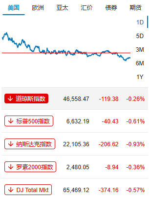 美股三大股指高开低走,道指收跌0.25%、标普500指数跌0.61%、纳指跌0.93%。