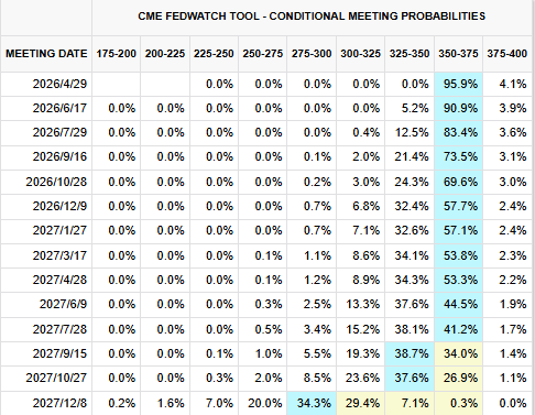 随着对伊朗情势持续紧张,另外受到稍早美联储主席鲍威尔于新闻发布会上谈话之后,市场大幅降息对于今年美联储降息预期,根据芝商所(CME)的FedWatch工具,利率期货显示,美联储在2026年完全不降息的可能性约为48%。而在冲突爆发前,这一可能性仅为4%。在周三的美联储政策决议公布前,特朗普曾要求降息。但美联储维持利率不变的决定获得了广泛支持,特朗普提名的三名理事中有两名投了赞成票。