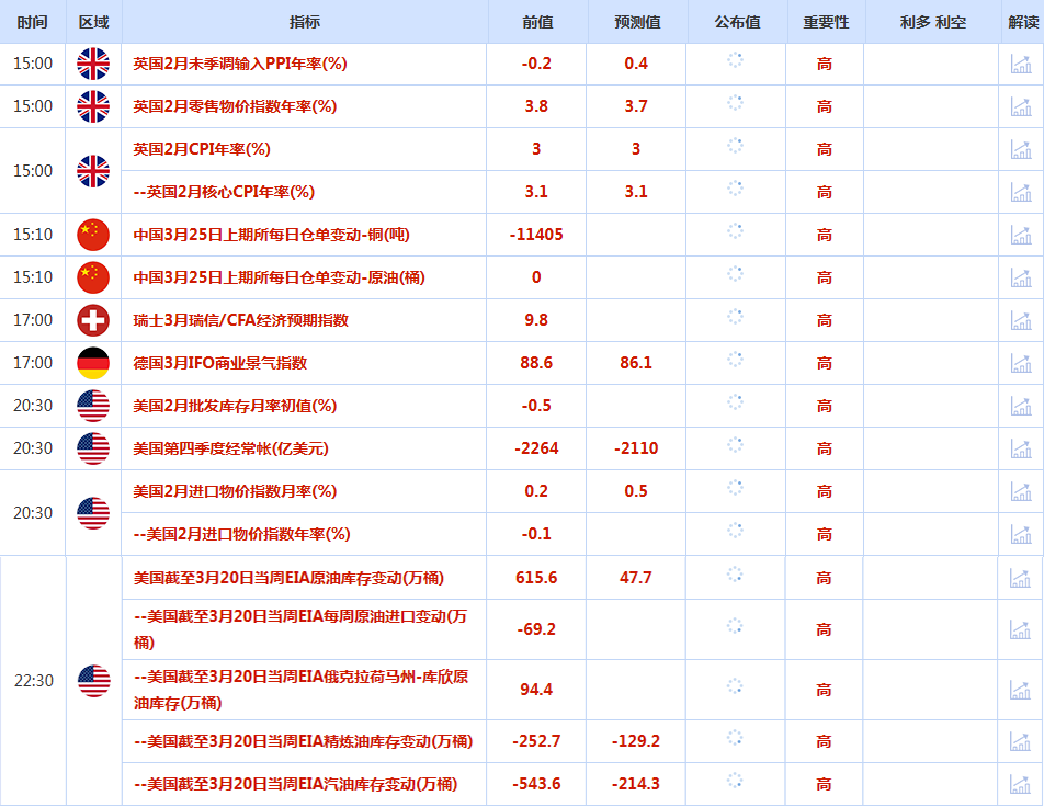 前日公布数据与消息: