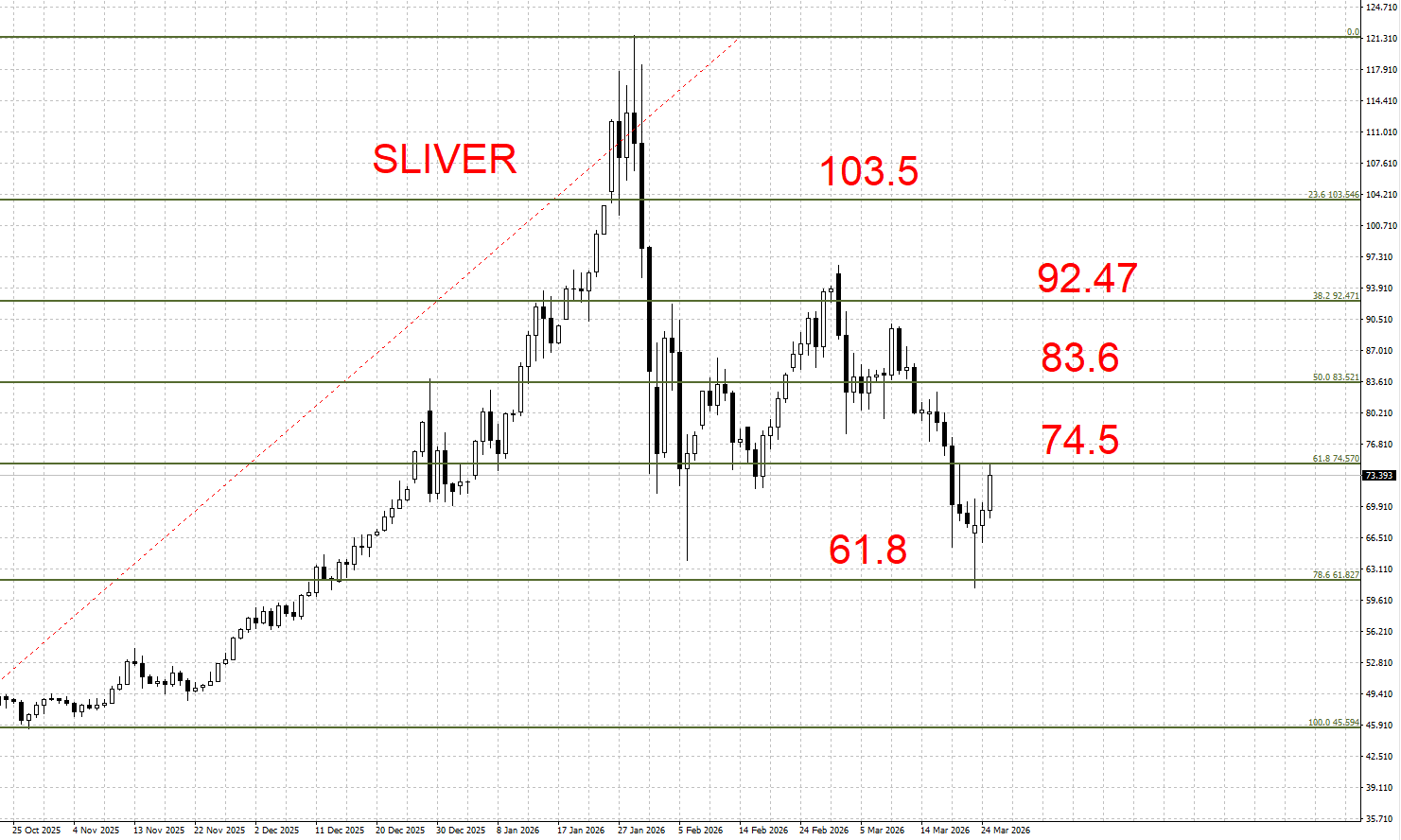银价回测61.8关键支撑后整体行情迎来反弹,并在昨日回测74.5关键阻力位置后回落,就近期操作方面,关注61.8-74.5区间,低多高抛为主。