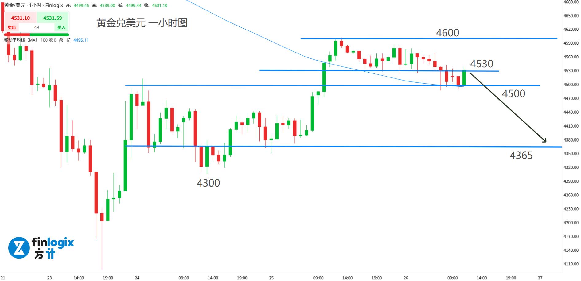 阻力参考:4530;4600(止损)